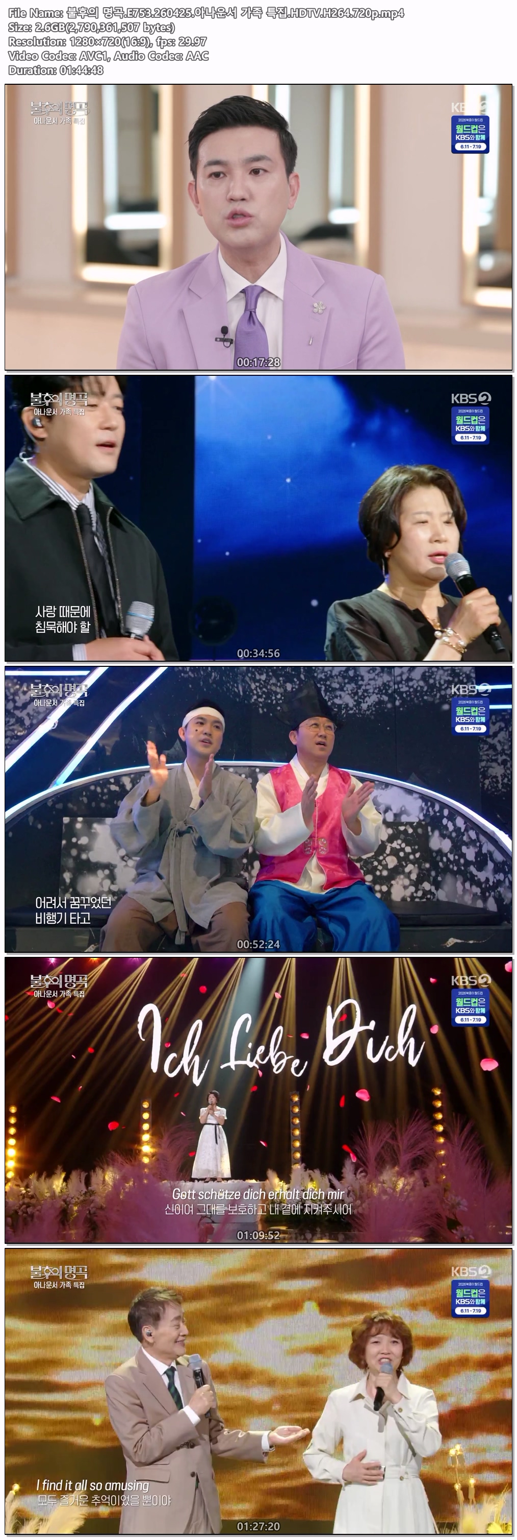 play_circle 동영상 불후의 명곡 E753 불후의 명곡.E753.260425.아나운서 가족 특집.HDTV.H264.720p person iq*** calendar_today 2026.04.26 visibility 6,942 다운로드 1개 파일 folder_zip 불후의 명곡.E753.260425.아나운서 가족 특집.HDTV.H264.720p.mp4 2.6 GB download