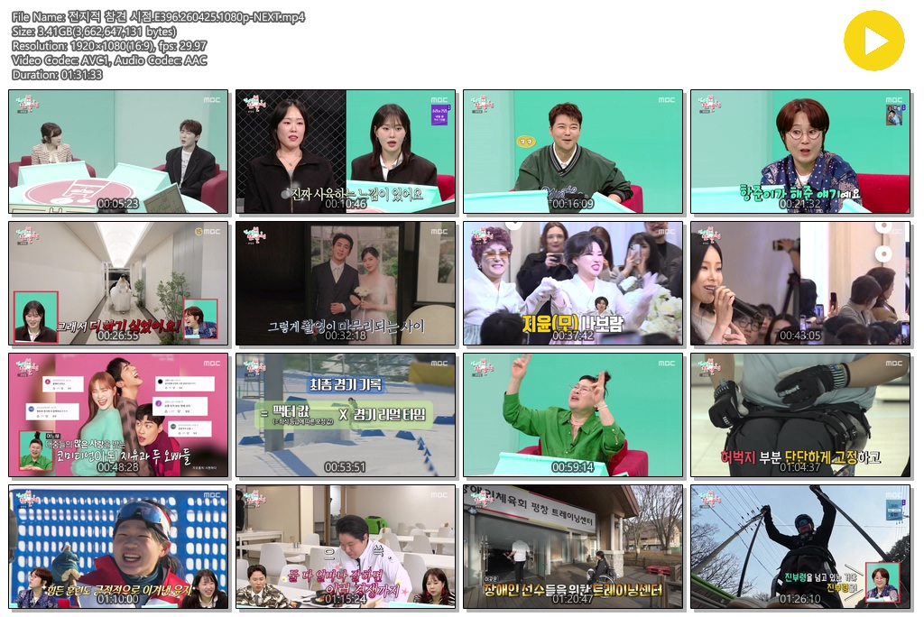 play_circle 동영상 전지적 참견 시점 전지적 참견 시점.E396.260425.1080p-NEXT person se*** calendar_today 2026.04.26 visibility 5,255 다운로드 1개 파일 folder_zip 전지적 참견 시점.E396.260425.1080p-NEXT.mp4 3.4 GB download