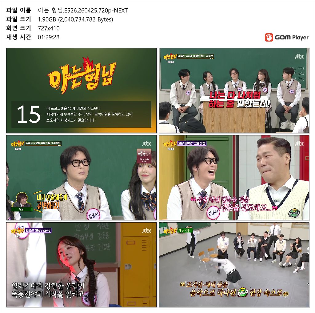 play_circle 동영상 아는 형님 E526 아는 형님.E526.260425.720p-NEXT person gm*** calendar_today 2026.04.26 visibility 7,199 다운로드 1개 파일 folder_zip 아는 형님.E526.260425.720p-NEXT.mp4 1.9 GB download