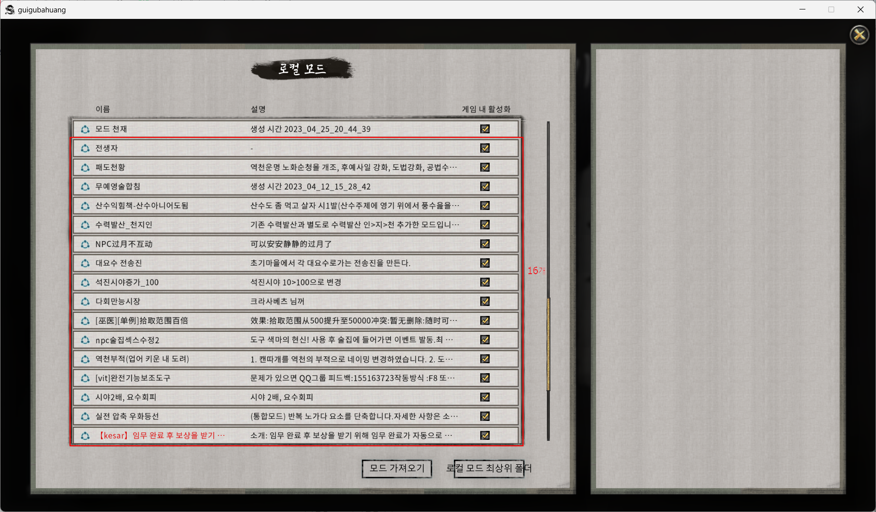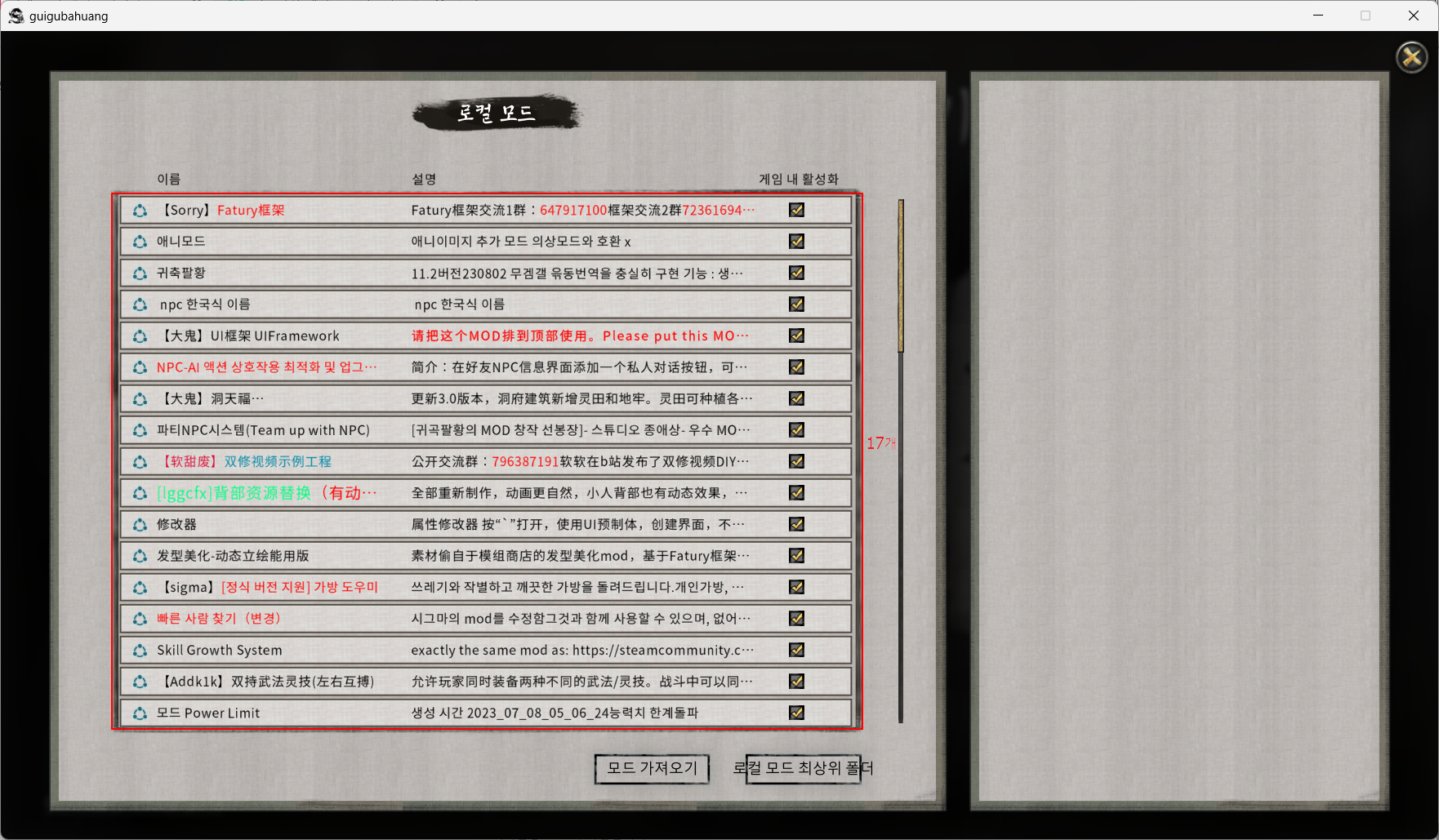 제가 적용한모드는 58개인데요... 저는 잘되는데...