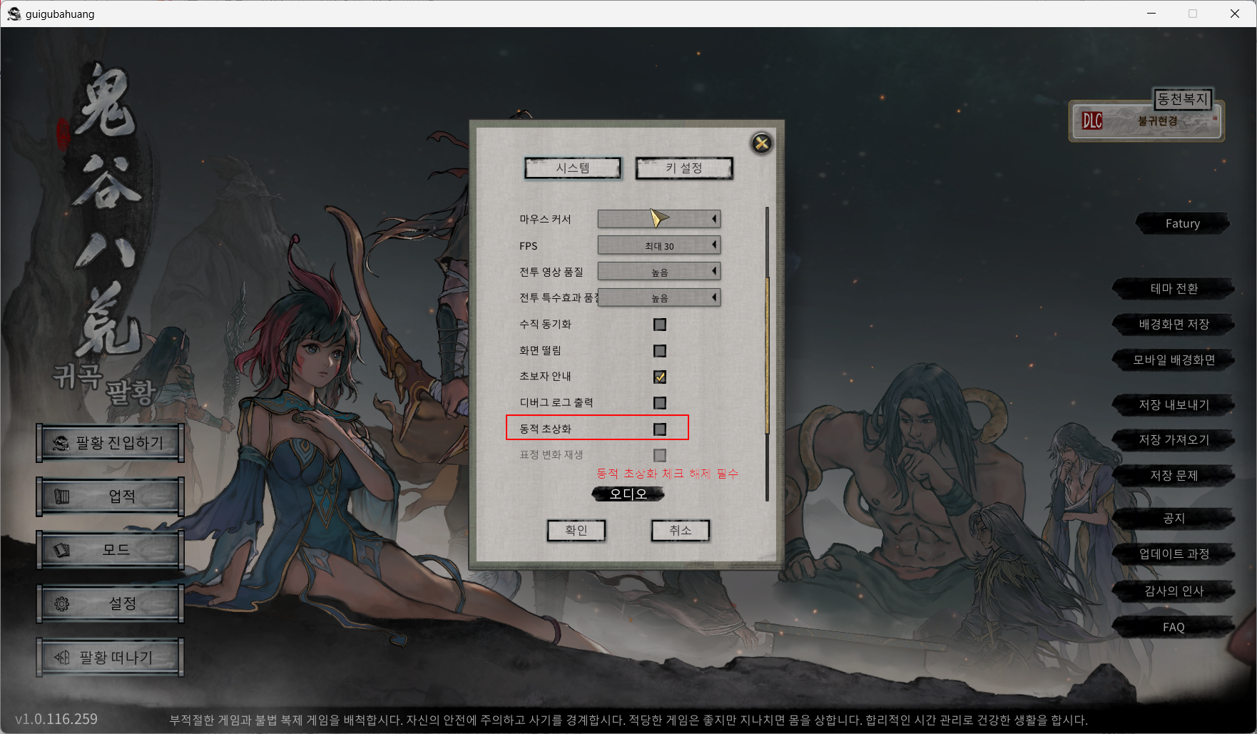설정에 들어가서 동적 초상화 체크 해제 필수 입니다. 그다음 게임 껏다가 다시 키세요.