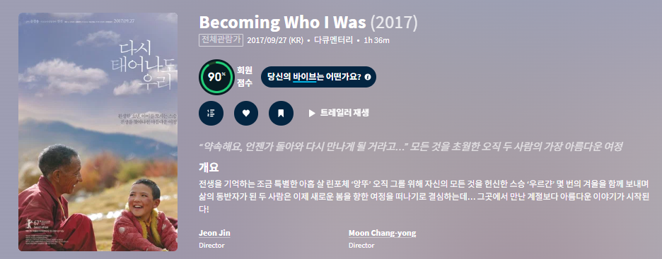 movie 영화 큐레이터 전생을 기억하는 [큐레이터] 전생을 기억하는 소년과의 여정 다큐.. person ru*** calendar_today 2026.04.28 visibility 4,409 영상에 한글자막이 붙어있는 파일입니다. 다운로드 1개 파일 folder_zip 다시태어나도우리.Becoming.Who.I.Was.2016.1280x720.KOR.mp4 2.5 GB download