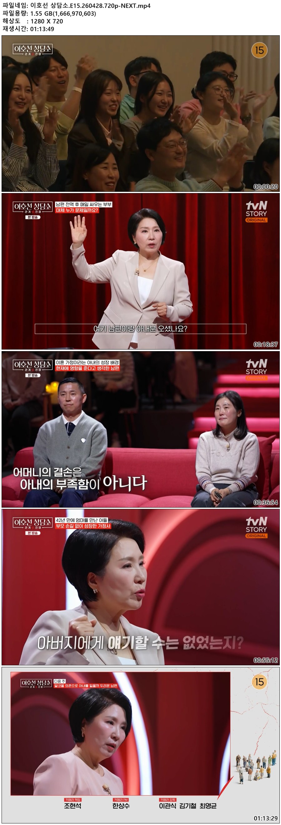 play_circle 동영상 이호선 상담소 E15 이호선 상담소.E15.260428.720p-NEXT person qk*** calendar_today 2026.04.29 visibility 4,309 다운로드 1개 파일 folder_zip 이호선 상담소.E15.260428.720p-NEXT.mp4 1.6 GB download