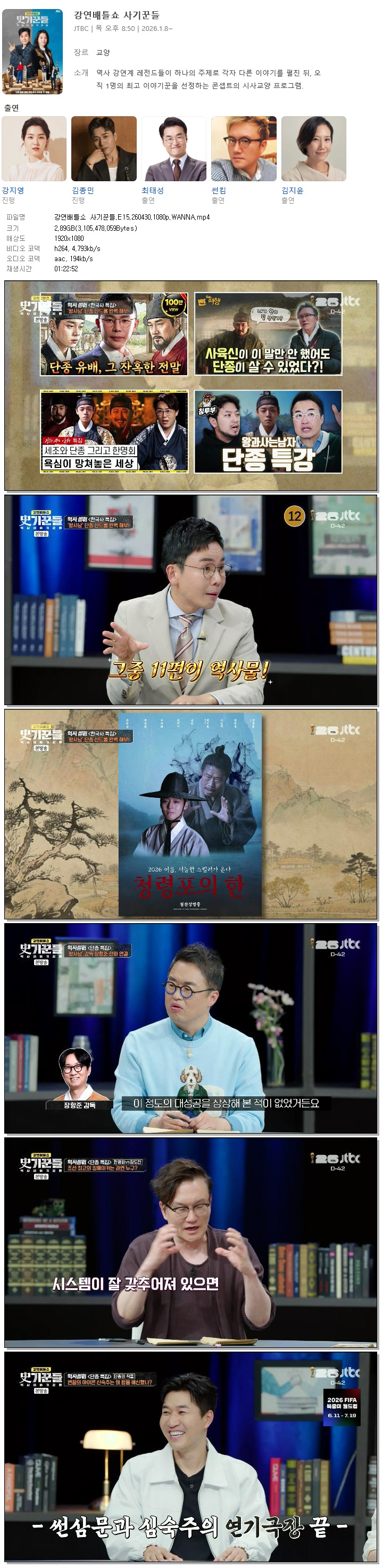 play_circle 동영상 강연배틀쇼 사기꾼들 E15 강연배틀쇼 사기꾼들.E15.260430.1080p.WANNA person 홀리*** calendar_today 2026.05.01 visibility 6,519 다운로드 1개 파일 folder_zip 강연배틀쇼 사기꾼들.E15.260430.1080p.WANNA.mp4 2.9 GB download
