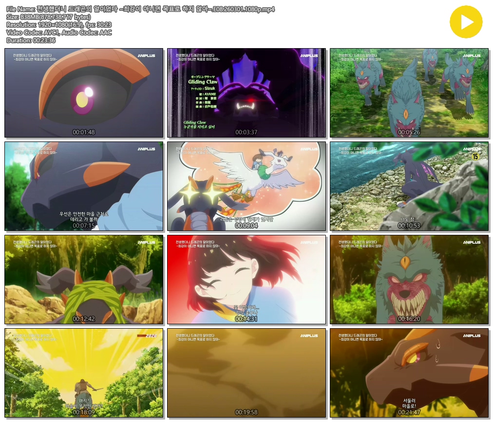 auto_awesome 애니 ANIPLUS 전생했더니 드래곤의 [ANIPLUS] 전생했더니 드래곤의 알이었다 - 08 (1920x1080) person 에어*** calendar_today 2026.01.01 visibility 3,754 다운로드 1개 파일 folder_zip 전생했더니 드래곤의 알이었다 ~최강이 아니면 목표로 하지 않아~.E08.260301.1080p.mp4 838 MB download