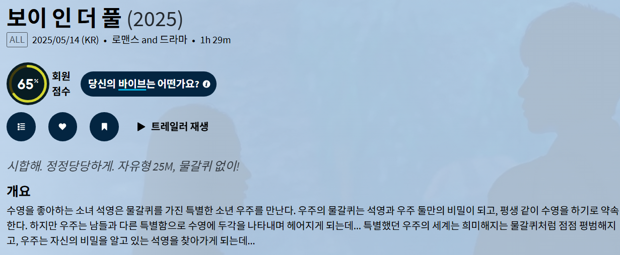 movie 영화 보이 인 더 보이 인 더 풀 (2025) "내 물갈퀴가 사라져도, 넌 여전히 나랑 수영해줄 거야?" person gg*** calendar_today 2026.01.01 visibility 6,000 다운로드 1개 파일 folder_zip 보이 인 더 풀 (2025).mp4 1.3 GB download