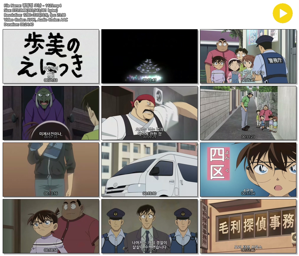 auto_awesome 애니 ANIPLUS 명탐정 코난 [ANIPLUS] 명탐정 코난 - 1125화 (1280x720) person 인생*** calendar_today 2026.01.01 visibility 5,251 다운로드 1개 파일 folder_zip 명탐정 코난 - 1125.mp4 375 MB download