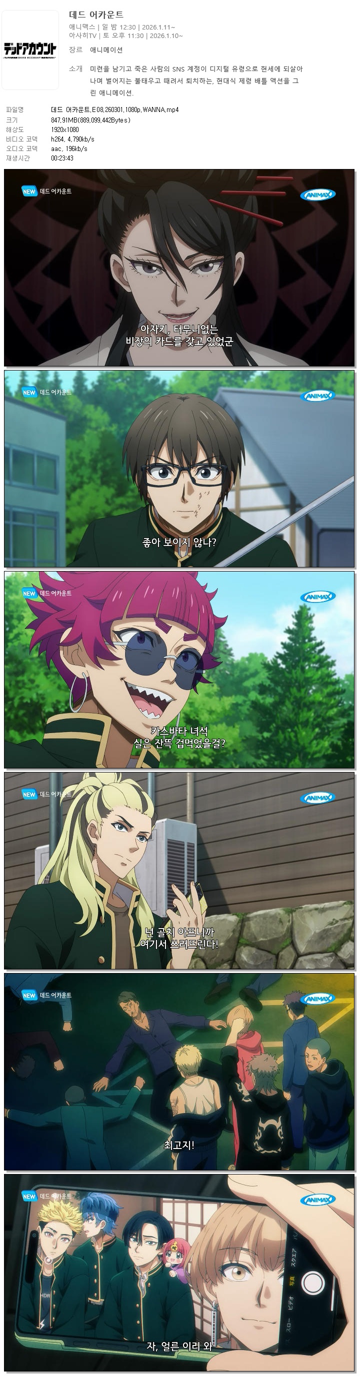 auto_awesome 애니 데드 어카운트E082603011080pWANNA 데드 어카운트.E08.260301.1080p.WANNA person 홀리*** calendar_today 2026.01.01 visibility 3,043 다운로드 1개 파일 folder_zip 데드 어카운트.E08.260301.1080p.WANNA.mp4 848 MB download