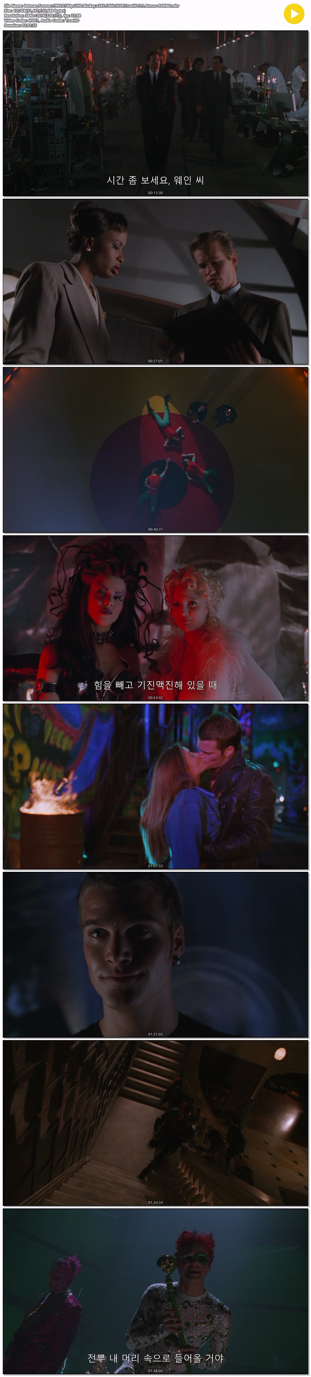 movie 영화 배트맨3 Forever 10bit [4K] 배트맨3 .Forever.1995.2160p.UHD.BluRay.x265.10bit.HDR.TrueHD.7.1 person ro*** calendar_today 2026.03.28 visibility 5,639 다운로드 2개 파일 folder_zip Batman.Forever.1995.2160p.UHD.BluRay.x265.10bit.HDR.TrueHD.7.1.Atmos-RARBG.mkv 10.7 GB download folder_zip Batman.Forever.1995.2160p.UHD.BluRay.x265.10bit.HDR.TrueHD.7.1.Atmos-RARBG.srt download