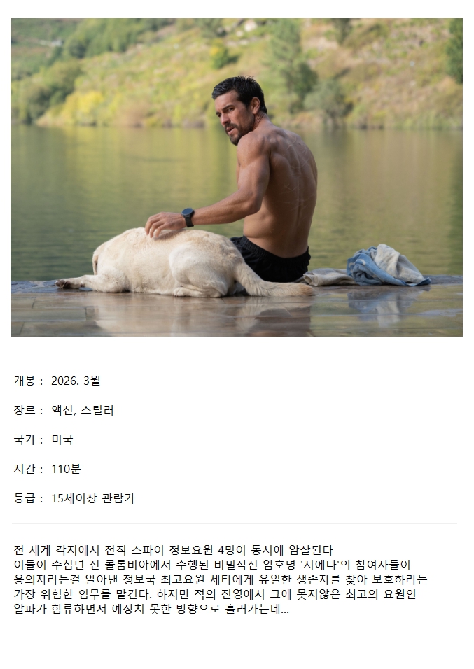 movie 영화 3월최신 액션대작 정보요원 3월최신 액션대작 정보요원 (( 비 밀 작 전 AGENT ZETA )) 공식자막 초고화질 BluRay5.1 person 현주*** calendar_today 2026.03.28 visibility 5,177 다운로드 1개 파일 folder_zip dpdldlwjdjxn tpdpxk.mkv 3.0 GB download