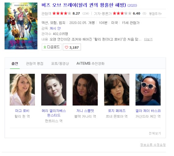 movie 영화 평점 조커 여친 [평점 8.2] 조커 여친 할리퀸 마고로비의 [버즈 오브 프레이] person go*** calendar_today 2026.03.29 visibility 7,579 다운로드 1개 파일 folder_zip 버즈 오브 프레이(완벽자막).mp4 3.6 GB download