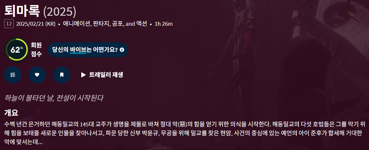movie 영화 퇴마록 2025 하늘이 퇴마록 (2025) "하늘이 불타던 날 시작된 예언, 전설의 퇴마록이 2025년 애니메이션으로 깨어난다" person gg*** calendar_today 2026.01.01 visibility 4,263 다운로드 1개 파일 folder_zip 퇴마록 (2025).mp4 1.3 GB download