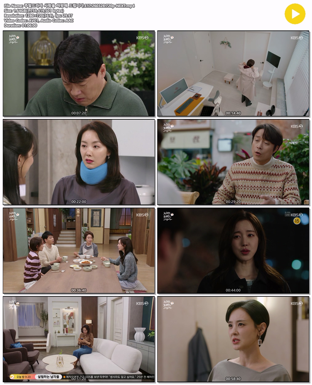 tv 드라마 주말드라마 사랑을 처방해 주말드라마 사랑을 처방해 드립니다.E17.260328.720p-NEXT person tm*** calendar_today 2026.03.29 visibility 7,682 다운로드 1개 파일 folder_zip 주말드라마 사랑을 처방해 드립니다.E17.260328.720p-NEXT.mp4 1.6 GB download