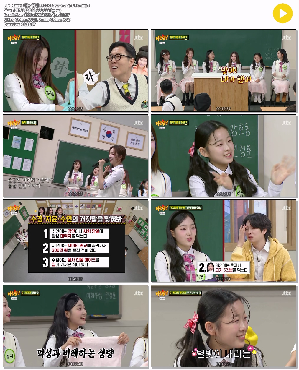 play_circle 동영상 아는 형님 E522 아는 형님.E522.260328.720p-NEXT person tm*** calendar_today 2026.03.29 visibility 6,309 다운로드 1개 파일 folder_zip 아는 형님.E522.260328.720p-NEXT.mp4 1.9 GB download