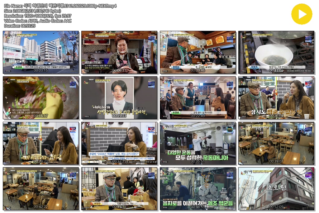 play_circle 동영상 식객 허영만의 백반기행 식객 허영만의 백반기행.E341.260329.1080p-NEXT person se*** calendar_today 2026.03.29 visibility 4,808 다운로드 1개 파일 folder_zip 식객 허영만의 백반기행.E341.260329.1080p-NEXT.mp4 2.1 GB download