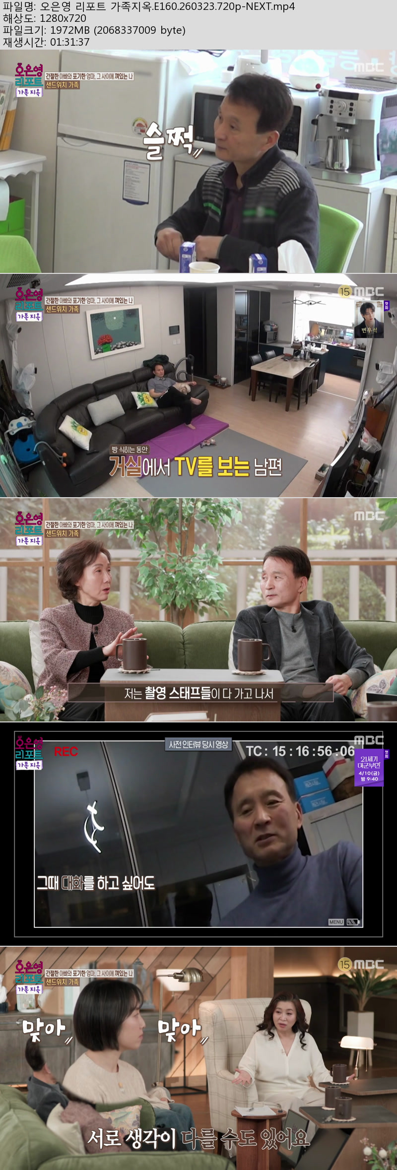 play_circle 동영상 오은영 리포트 가족지옥 오은영 리포트 가족지옥.E160.260323.720p-NEXT person kk*** calendar_today 2026.03.29 visibility 6,956 다운로드 1개 파일 folder_zip 오은영 리포트 가족지옥.E160.260323.720p-NEXT.mp4 1.9 GB download
