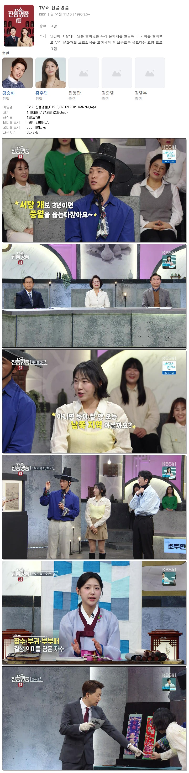 play_circle 동영상 TV쇼 진품명품 E1516 TV쇼 진품명품.E1516.260329.720p.WANNA person 바오*** calendar_today 2026.03.29 visibility 7,440 다운로드 1개 파일 folder_zip TV쇼 진품명품.E1516.260329.720p.WANNA.mp4 1.1 GB download