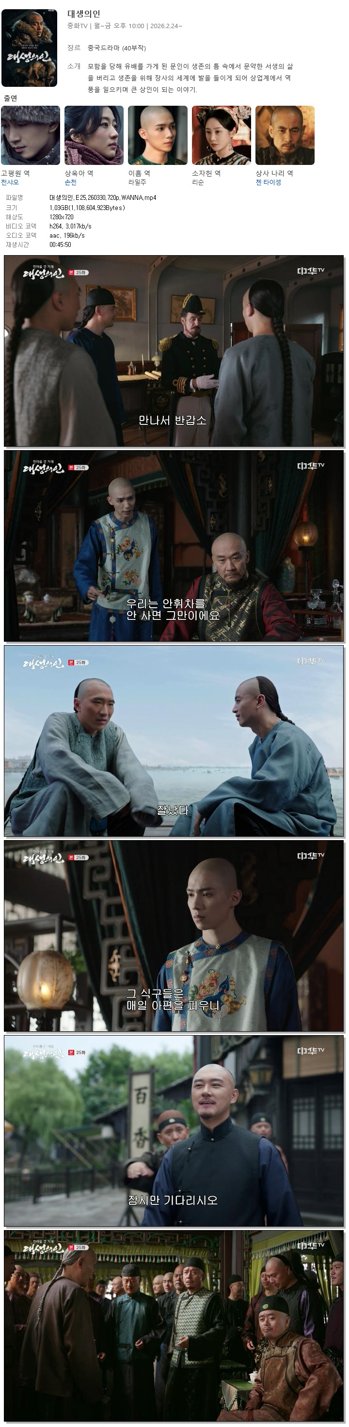 tv 드라마 대생의인 E25 WANNA 대생의인.E25.260330.720p.WANNA person 바오*** calendar_today 2026.03.30 visibility 6,323 다운로드 1개 파일 folder_zip 대생의인.E25.260330.720p.WANNA.mp4 1.0 GB download