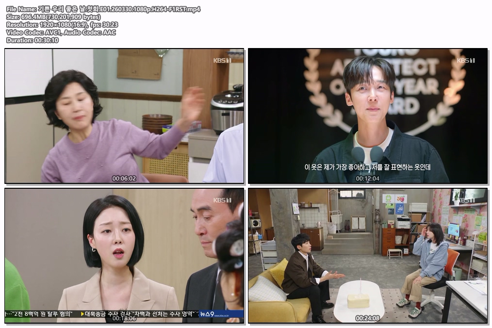 tv 드라마 기쁜 우리 좋은 기쁜 우리 좋은 날.첫회.E01.260330.1080p.H264-F1RST person he*** calendar_today 2026.03.30 visibility 7,106 다운로드 1개 파일 folder_zip 기쁜 우리 좋은 날.첫회.E01.260330.1080p.H264-F1RST.mp4 696 MB download