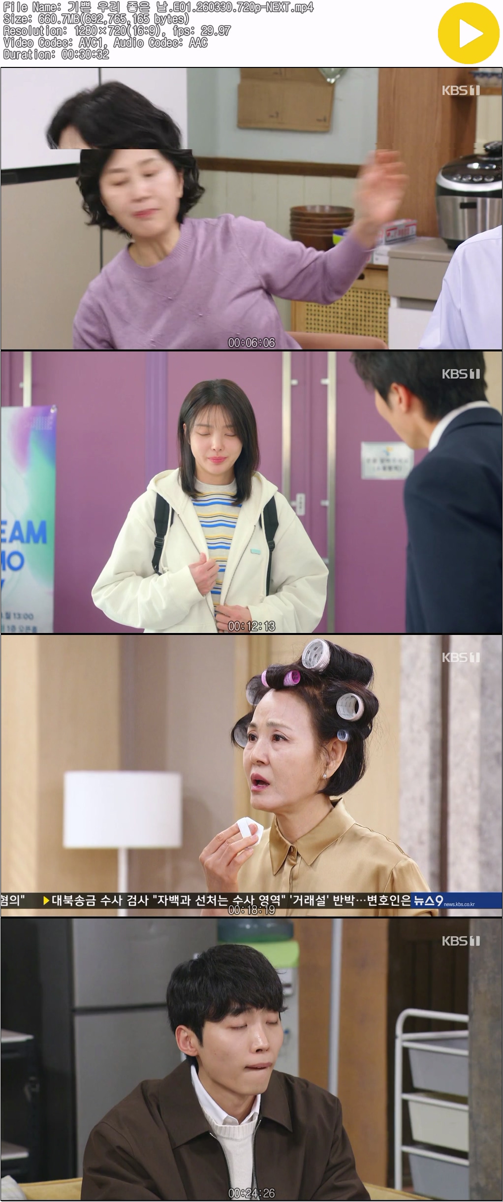 tv 드라마 기쁜 우리 좋은 기쁜 우리 좋은 날.E01.260330.720p-NEXT person oh*** calendar_today 2026.03.30 visibility 3,292 다운로드 1개 파일 folder_zip 기쁜 우리 좋은 날.E01.260330.720p-NEXT.mp4 661 MB download