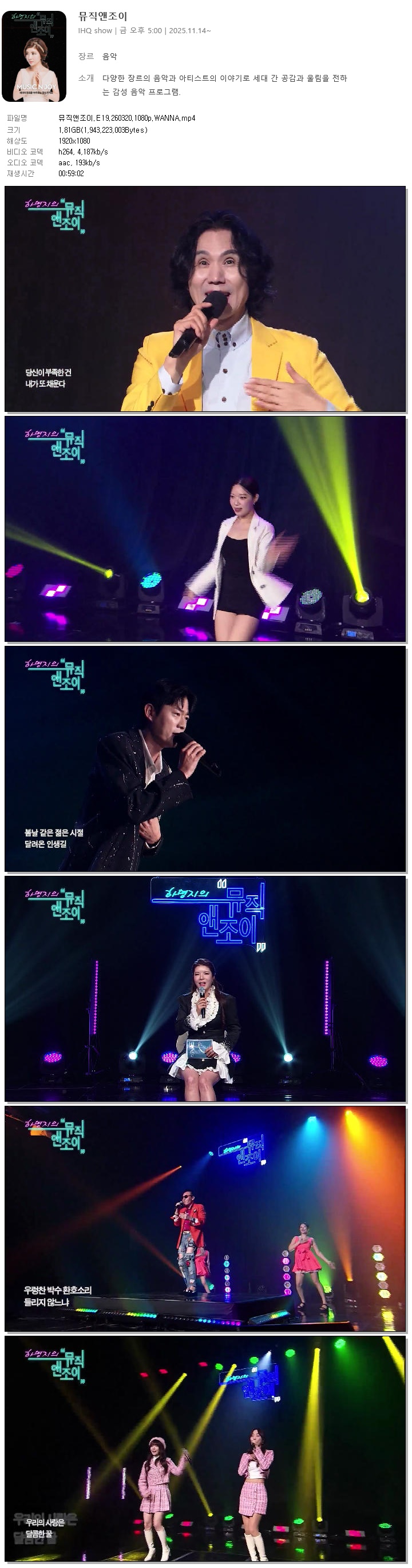 play_circle 동영상 뮤직앤조이 E19 WANNA 뮤직앤조이.E19.260320.1080p.WANNA person 홀리*** calendar_today 2026.03.30 visibility 7,531 다운로드 1개 파일 folder_zip 뮤직앤조이.E19.260320.1080p.WANNA.mp4 1.8 GB download
