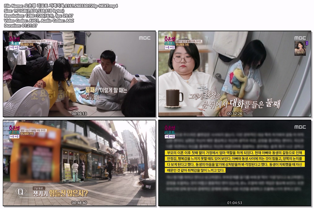 play_circle 동영상 오은영 리포트 가족지옥 오은영 리포트 가족지옥.E161.260330.720p-NEXT person he*** calendar_today 2026.03.30 visibility 7,026 다운로드 1개 파일 folder_zip 오은영 리포트 가족지옥.E161.260330.720p-NEXT.mp4 1.7 GB download