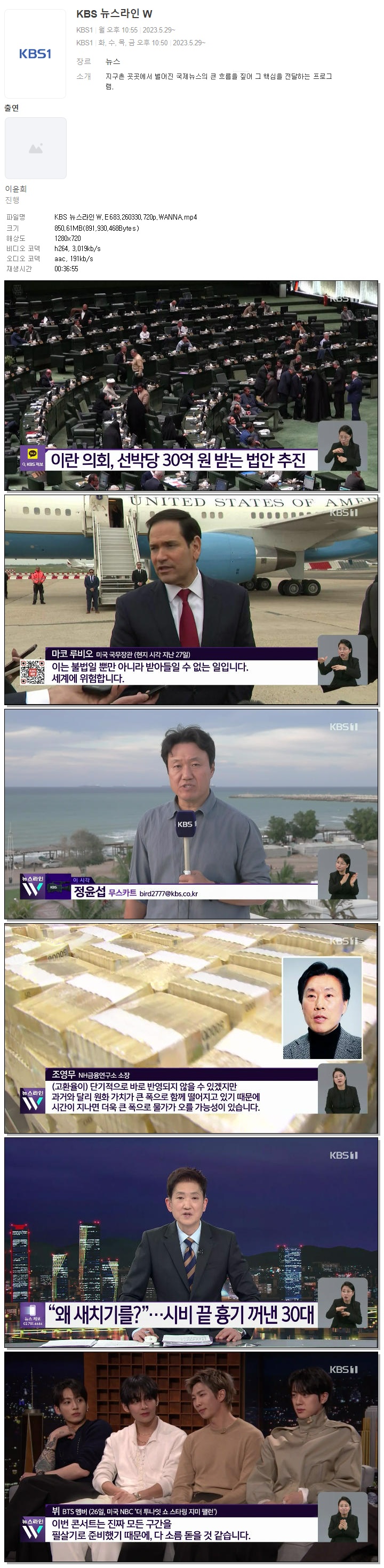 play_circle 동영상 KBS 뉴스라인W E683 KBS 뉴스라인W.E683.260330.720p.WANNA person 바오*** calendar_today 2026.03.30 visibility 4,751 다운로드 1개 파일 folder_zip KBS 뉴스라인W.E683.260330.720p.WANNA.mp4 851 MB download